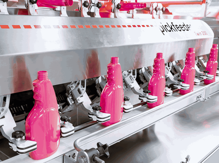 By leveraging the highly flexible XTS, the new Pickfeeder family of machines can sort bottles of various materials and vastly different sizes and shapes without mechanical modifications to the production line. The use of XTS in combination with delta robots eliminates the need for specially shaped parts that are normally needed for each individual bottle in a standard machine and enables the Pickfeeder’s automatic changeover functionality.