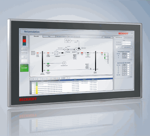 A CX5140 embedded PC from Beckhoff serves as the central automation and control hardware, while various EtherCAT Terminals are used to measure mechanical and electrical variables. Encoders are installed in both machines to measure the rotary speed and these are evaluated by EL5021 SinCos encoder interfaces. Torques can be established by means of two torque measuring shafts and an ELM300x analog voltage measuring terminal. EL3783 power monitoring oversampling terminals, in combination with current transformers, capture the 3-phase voltage, current and power values. The PC communicates with the drive inverter via EtherCAT.