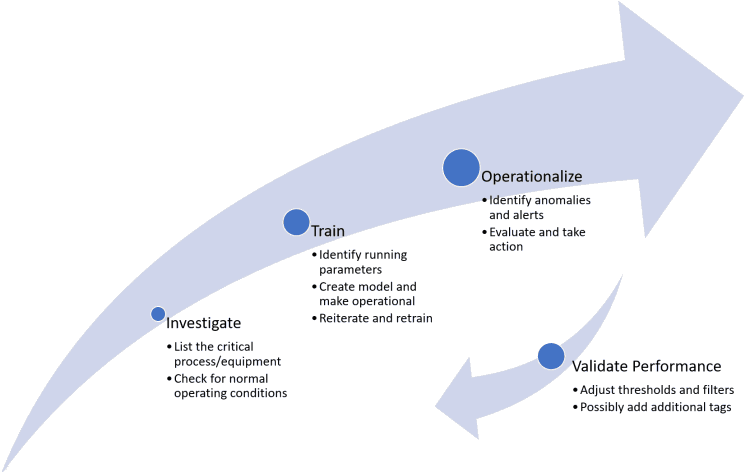 Once all of the relevant tags have been selected, the next step is to define the historical time period for the model to ‘train’ on. These periods should typically be six to twelve months of historical data and should be during a period where, for most of the time, the pump was in a ‘normal’ or ‘healthy’ condition. The IML uses an automated, iterative process where the model continuously adapts and tests itself, based on the historical data, to find the right combination of algorithms that are able to ‘predict’ the values with an acceptable degree of accuracy. Most IML platforms automatically define ‘normal’ operations and handle (exclude) outliers and ‘bad quality’ data.