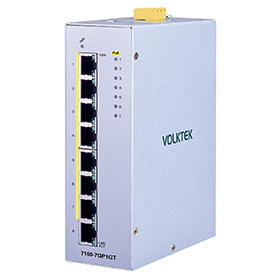 Housed in a rugged IP40 metal case, the 7160-7GP1GT operates in extreme temperatures from -10 to 60°C. It features a redundant power supply and alarm relay system for added reliability, while its mini-DIN connector ensures secure attachment even in high-vibration environments. This switch is ideal for industrial networks requiring a cost-effective, high-performance PoE solution.