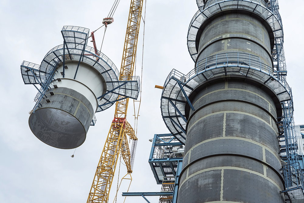 To address this, strand jacks were integrated into the crane’s rigging, enabling the team to level the unit during the lift prior to installation. The six stack modules, which combine to form a large chimney, were among the most logistically challenging components to deliver, as they had to be transported via a public road.