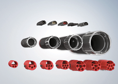 One particular advantage of the hybrid connectors is their modularity. The data module, which is standardised across all sizes, enables a reduction in the number of variants while maintaining a high degree of flexibility. The mechanical and visual coding reliably prevents mismating. The connectors can be assembled intuitively from just ten individual components. Incorrect assembly is prevented by their mechanics. In practice, this cuts installation time by up to 66% in comparison to similar solutions.