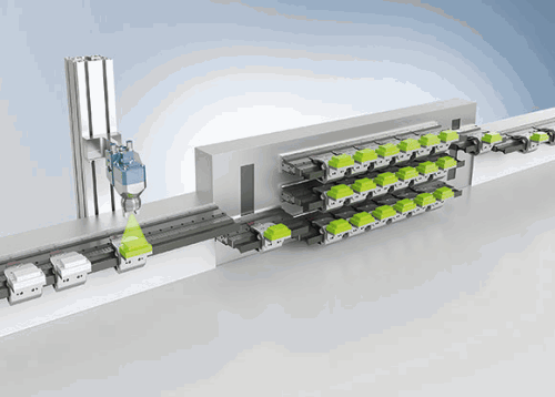 With the new track management, track parts can now be stacked to create compact and efficient product holding capacity while maintaining a small overall machine footprint. Furthermore, in contrast to conventional buffer systems, there is no need to create extra parts handling capacity because the products are stored together with their movers and therefore remain clearly identifiable and easy to control.