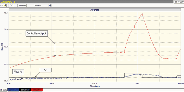 Figure 4 shows the closed-loop ‘as found’ test with changes in SP being made, and it can be seen how badly and frequently the rapid fluctuations occurred.