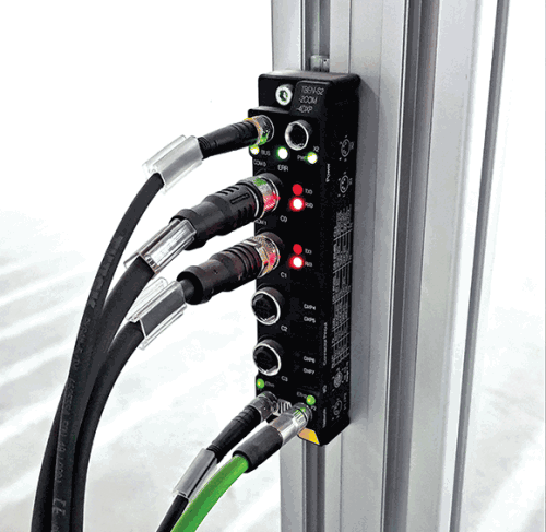The communication of the PTL110 devices with the WMS is crucial for the optimal operation of the solution. All PTL110 devices are connected for this purpose via Turck’s TBEN-S multiprotocol I/O modules. The robust IP67 modules can be mounted directly on the conveyor line without a control cabinet, and feature as standard the web-based ARGEE field logic controller software.